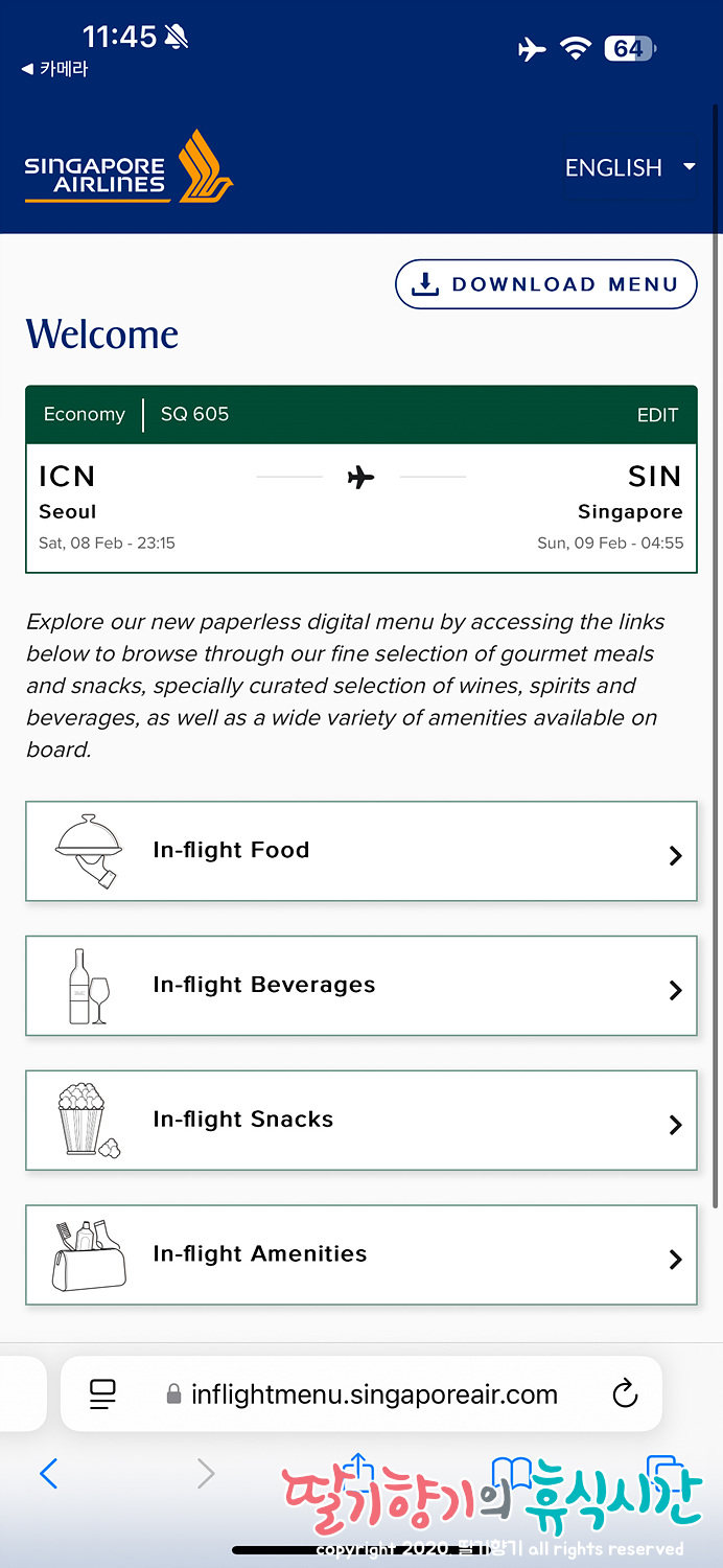 그러다보니 국적기보다는 싱가포르의 국적기인 싱가포르항공을 이용하게 되었다.