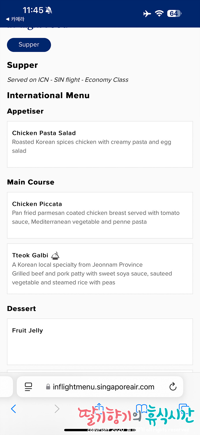 그리고 싱가포르항공을 탄다면 시킬 수 밖에 없는 싱가포르 실링