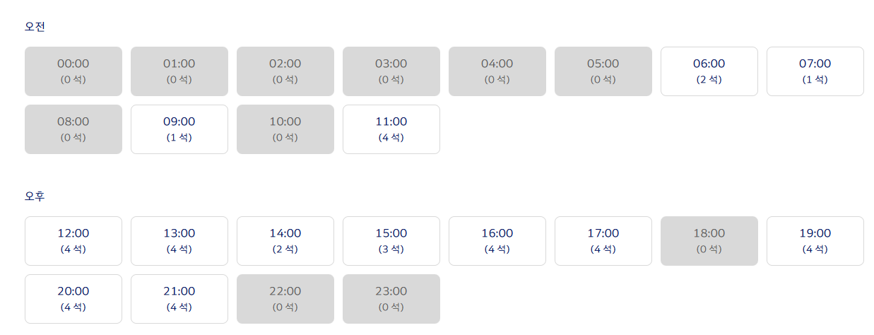 선택하고 나면 시간별로 예약을 할 수 있는데, 많이 남지 않은 것이 아니라,