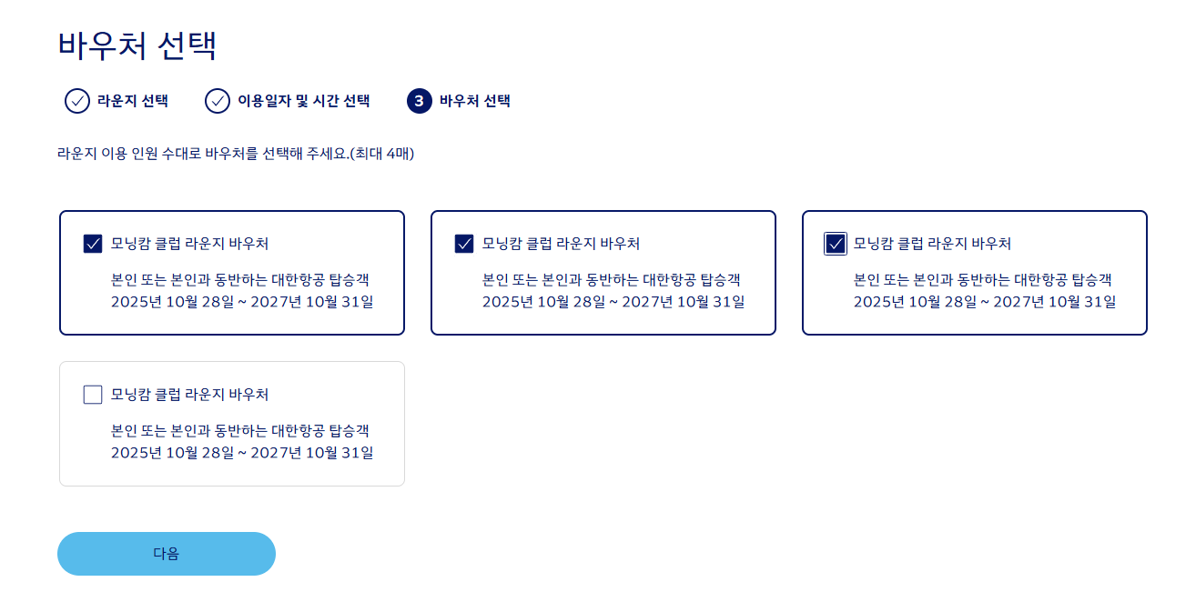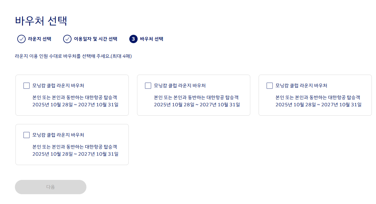 게다가 라운지 바우처도 이용하기 위해서는 결국 대한항공을 타야 하므로 더 메리트가 없는 것 같다.