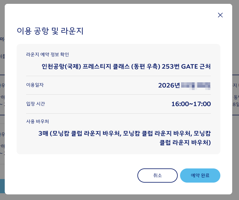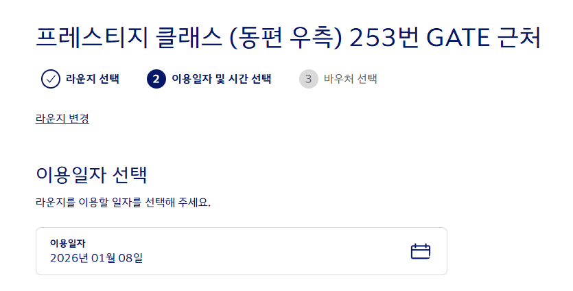 라운지를 선택하고 나면 이용 날짜를 선택하게 되는데 한달 전쯤에 예약이 풀린다.