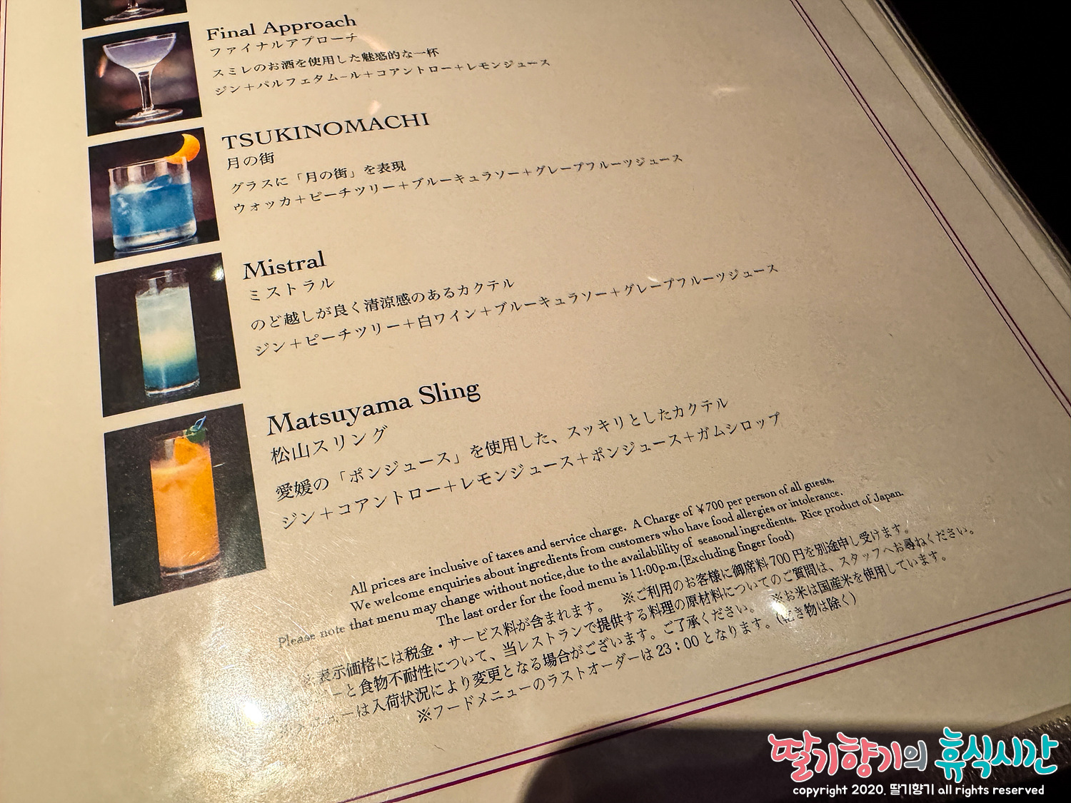 금액대는 호텔 라운지 바에 일본인걸 감안하면 비싸진 않다.