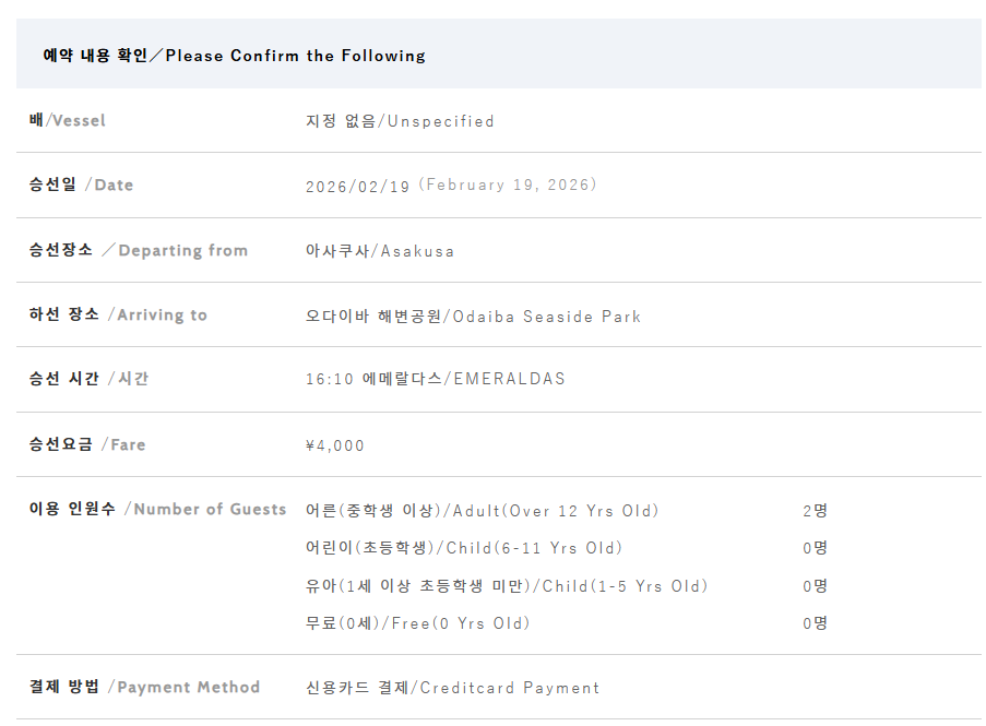 주로 많이 이용하는 건 아사쿠사에서 오다이바 혹은 그 반대이다.