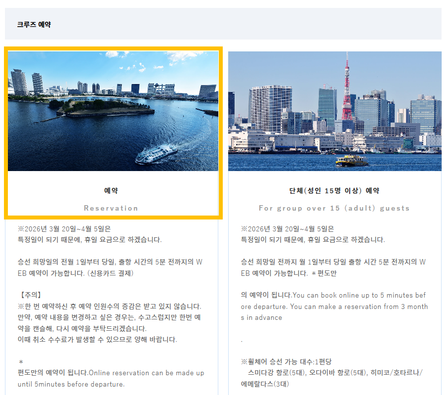 그리고 봄에는 꽃놀이 겸 수상버스를 이용하는 루트들이 있는 등 티켓을 현장에서 구하기 쉽지 않다고 한다